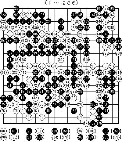236手完・白番 一力棋聖の中押し勝ち(現地時間 午後6時4分終局)