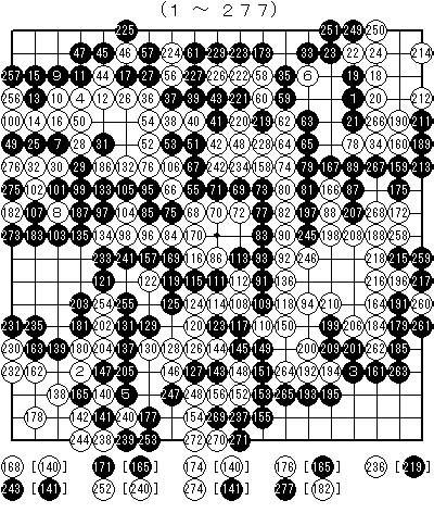 277手完・白番 芝野十段の半目勝ち(午後6時12分終局)