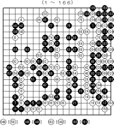 166手完・白番 一力棋聖の中押し勝ち(現地時間 午後4時1分終局)