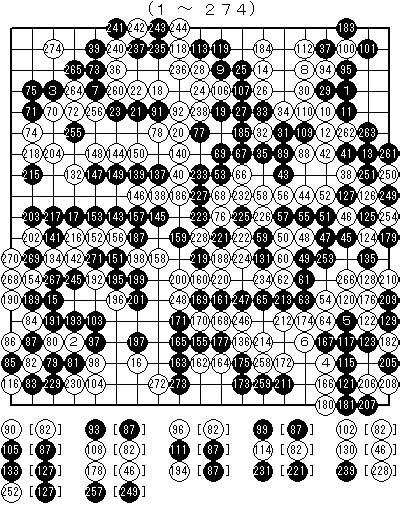 274手完・白番 芝野十段の中押し勝ち(現地時間 午後6時57分終局)
